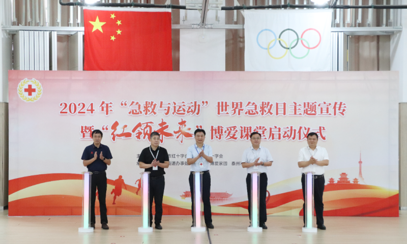 2024年9月14日是第25个“世界急救日”为践行“人民至上、生命至上”的理念普及应急救护知识和技能提高孩子的风险识别和自救互救能力呵护青少年健康成长培养担当民族复兴大任的时代新人 泰州市红十字会、海陵区红十字会联合城东街道办事处、春晖社区博爱家园、泰州市体育运动学校启动2024年“急救与运动”世界急救日主题宣传暨“红领未来”博爱课堂活动