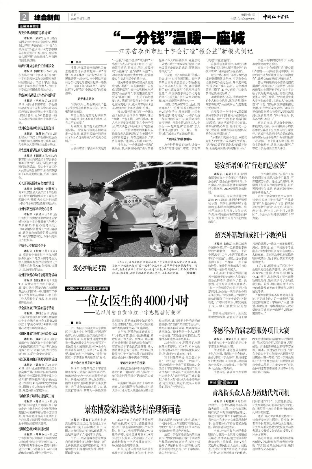 6 月 10 日,《中国红十字报》2 版刊登《“一分钱” 温暖一座城》,聚焦报道泰州市红十字会打造的 “微公益” 新模式。这一创新经验再次登上国家级行业报刊,彰显了泰州公益实践的独特魅力与示范价值。